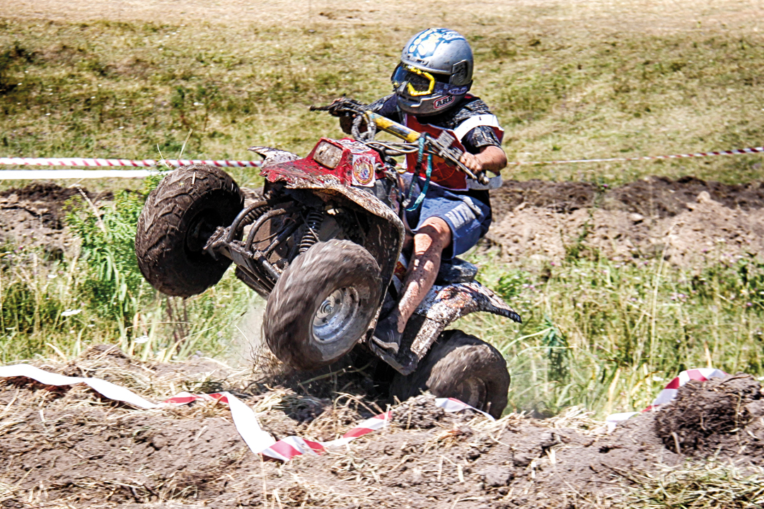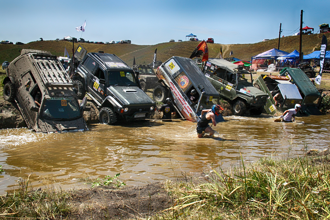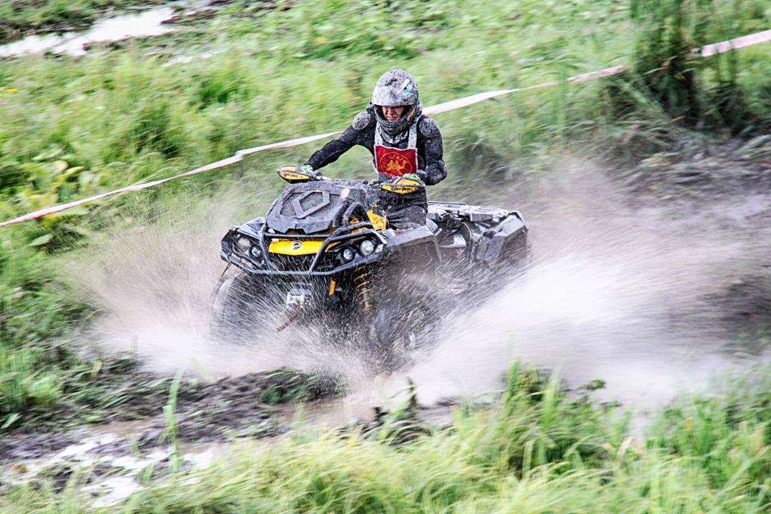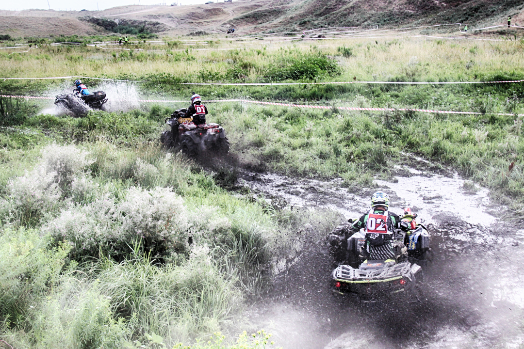 По традиции открыли соревнования детские заезды на квадриках с объемом от 50 до 150 «кубиков». Заставляя замирать то от страха, то от восторга, ATV BABY откатали свое время, уступив место ATV-4х4. И понеслось! Благо финишировать было необязательно, цель была – намотать как можно больше кругов за 40 минут. Так под конец гонки все 12 квадроциклов и встали дружно на одном из водных препятствий. Взрослые же вроде люди, а все надеются на авось…