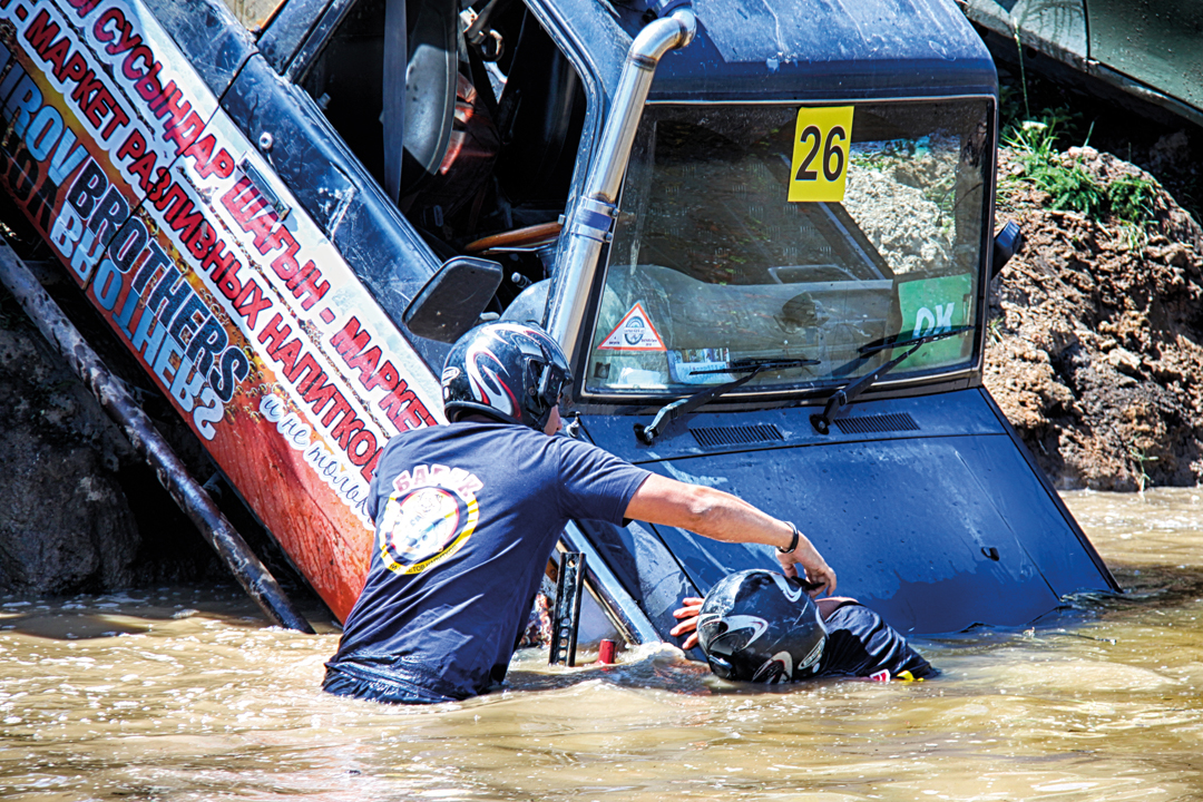 Вообще, трасса в этот раз у Сергея получилась девятой категории сложности. Казалось бы, какие-то два километра, а сколько сюрпризов. Перекрыл речку в трех местах и всю дорогу залило. Загнал техничку, построил пару дополнительных элементов – снижай скорость, включай мозги…