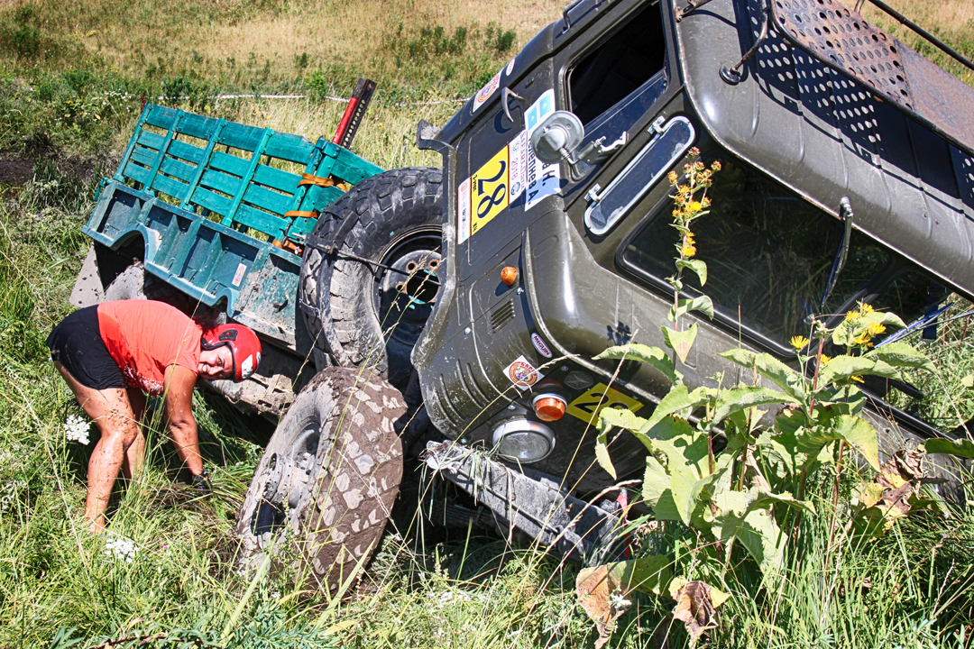 Во второй день соревнований земля содрогалась от рева внедорожников, вышедших на старт кольцевой гонки. Как и прежде участники выступали в четырех категориях: ТР-1 (стандартные внедорожники без каркаса безопасности), ТР-2 (модифицированные авто), ТР-3 и ТР-4 (специально подготовленные машины). Здесь от участников также требовалось немало сообразительности. Многие, например, попались в ловушку на «Малазийской яме». Ни один из штурманов не вышел проверить ее «ножками», все понадеялись на память – на первом этапе она тоже была, а тут – о-па! – и поплавать пришлось, ведь размер ее увеличили. Будет наука на будущее.