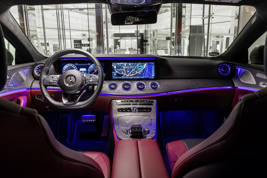 Яркая особенность передней части автомобиля — «алмазная» решетка радиатора. Ее открывающийся к низу контур делает CLS визуально еще более широким и мощным. Многие энтузиасты гоночного спорта помнят историю этого дизайна. Новый CLS открывает в ней новую главу, демонстрируя спортивность в элегантном обличии. Атлет и сильная личность. Его формы обещают спортивность. Его детали подтверждают ее. Например, высокая линия подоконного пояса, низкие боковые стекла, задние фонари из двух частей и широкие «плечи». Каждым своим сантиметром новый CLS демонстрирует волнующую эстетику. А его комфортная подсветка салона из 64 цветов впечатляюще инсценирует экспрессивный и шикарный интерьер. Рулевое колесо с сенсорными панелями, два 12,3-дюймовых монитора на передней панели под общим козырьком, дефлекторы системы вентиляции, напоминающие сопла авиационных турбин, мультимедийный комплекс In-Car Office, премиальные материалы отделки – все это новый MB CLS.
