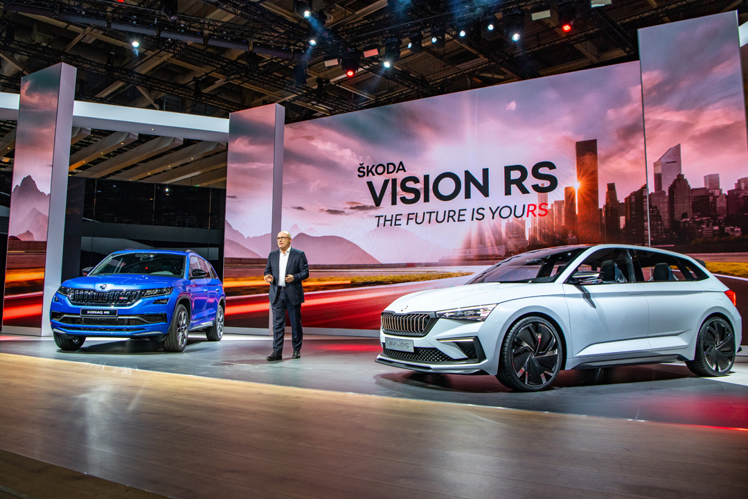 Не так давно у нас на рынке появился большой кроссовер ческой марки — Skoda Kodiaq, причем с казахстанской «пропиской». Здесь же в Париже миру явили его заряженную версию. Внешне модификацию RS от обычной можно отличить по 20-дюймовым дискам Xtreme и светодиодным фарам. Под капотом здесь двухлитровый твинтурбо мощностью 240 л.с. (500 Нм), работающий в связке с 7-ступенчатой роботизированной коробкой DSG, полным приводом и электронноуправляемыми амортизаторами DCC. В салоне появилась система Dynamic Sound Boost, позволяющая наслаждаться сочным «басом» двигателя.