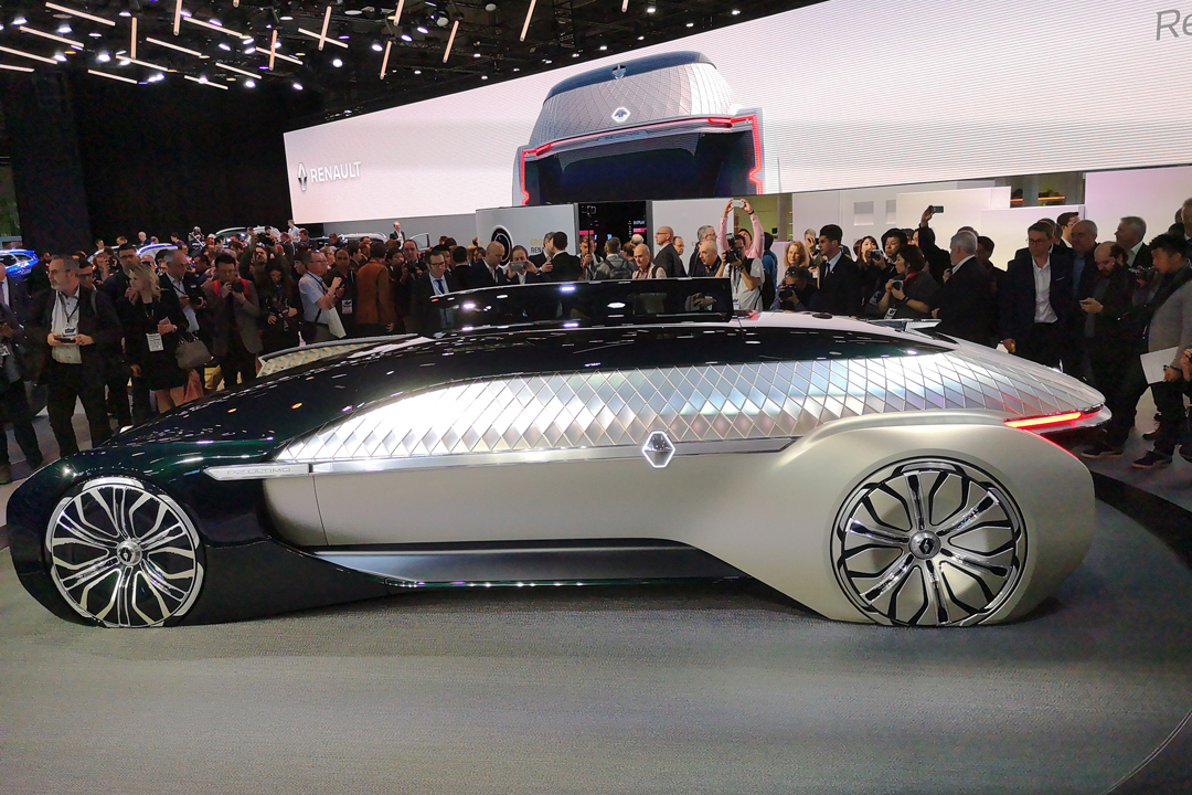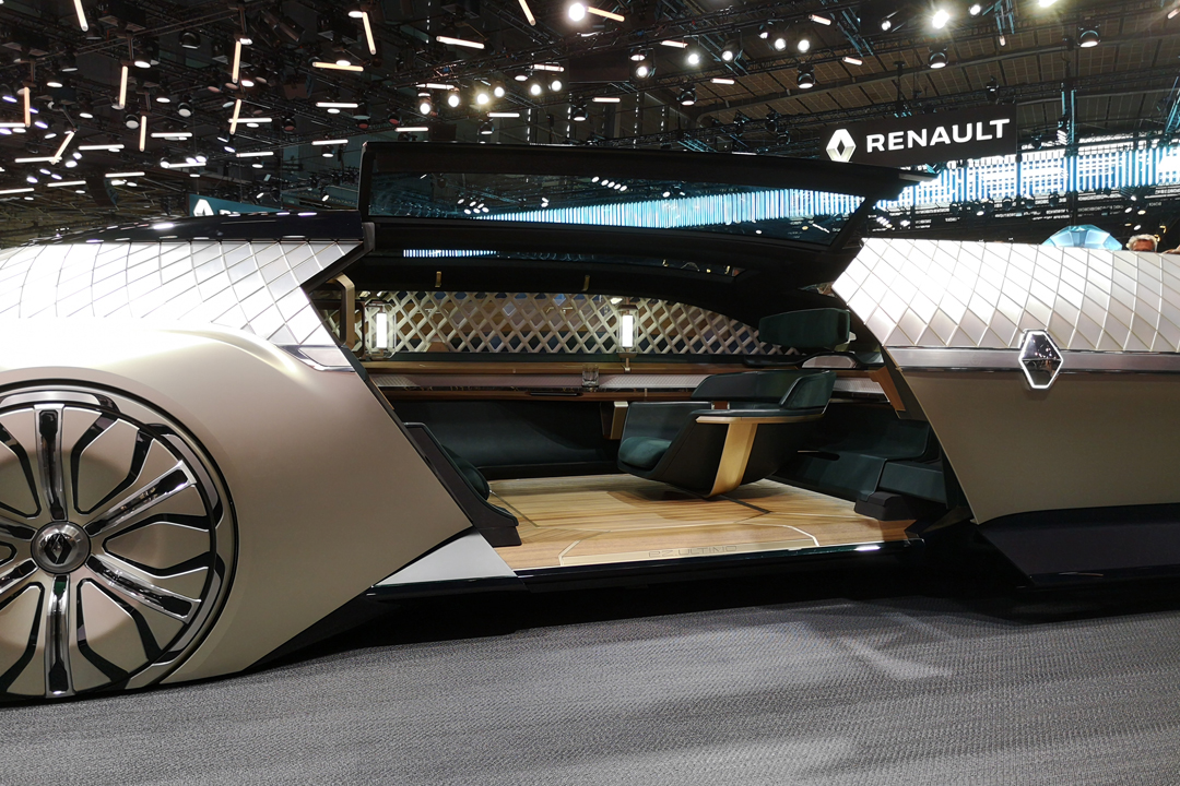Одним из самых красивых творений на «батарейках» в Париже был концепт Renault EZ-ULTIMO. Это уже третий по счету робомобиль, представленный французами в этом году. На этот раз премиум-сегмента. Назначение — бизнес-шаттл, путешествия, индивидуальные туристические туры. Здесь технология автономного вождения 4-го уровня, развлекательная система Augmented Editorial Experience с персонализированным контентом, фасеточные стекла, отделка мрамором, кожей, деревом… Ух! Но о серийном производстве такого робомобиля пока речь не идет.