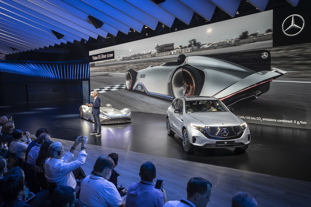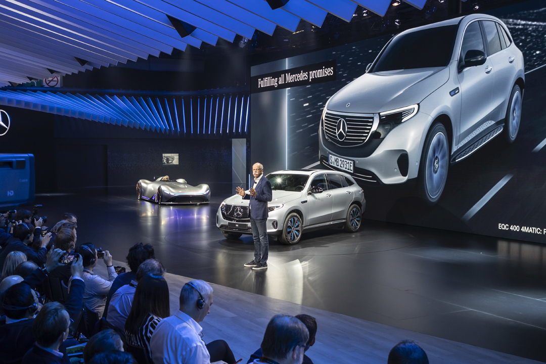 Другое дело Mercedes-Benz EQC — первый представитель немецкого суббренда встанет на конвейер уже в следующем году. Внешне автомобиль довольно сильно выделяется на фоне моделей традиционной модельной линейки, зато внутри все знакомо. Построен он на той же платформе, что и модель GLC. Спереди — двухрычажная подвеска, сзади — многорычажка. В движение его приводят два электромотора — по одному на каждую ось, что обеспечивает тяговое усилие в 408 л.с. При этом передний электромотор настроен на экономичный ход с малыми и средними нагрузками, задний же отвечает за интенсивное ускорение. Запас хода на одной зарядке — до 450 км. Максимальная скорость — 180 км/ч. Разгон до первой сотни — 5.1 секунды.