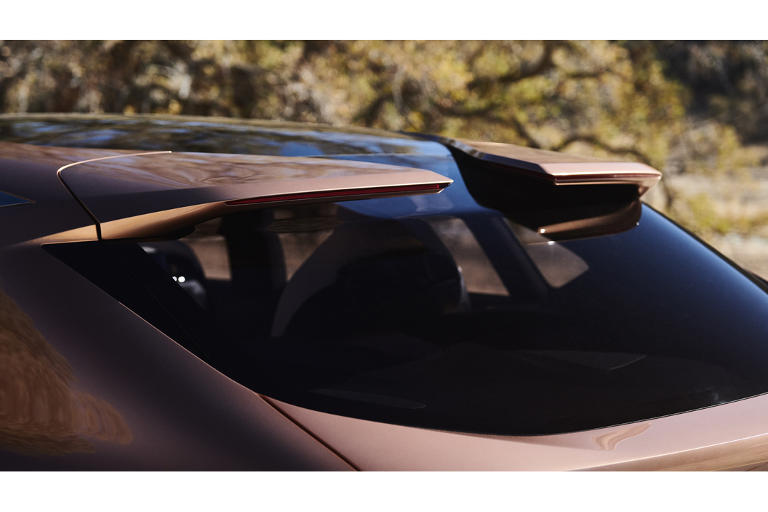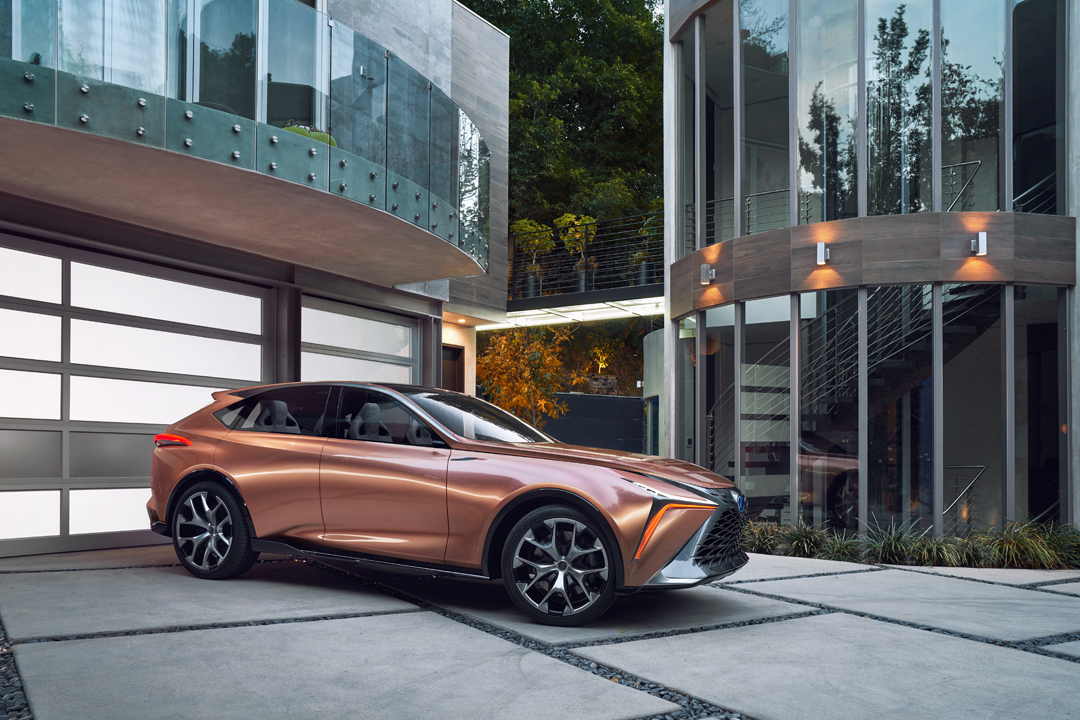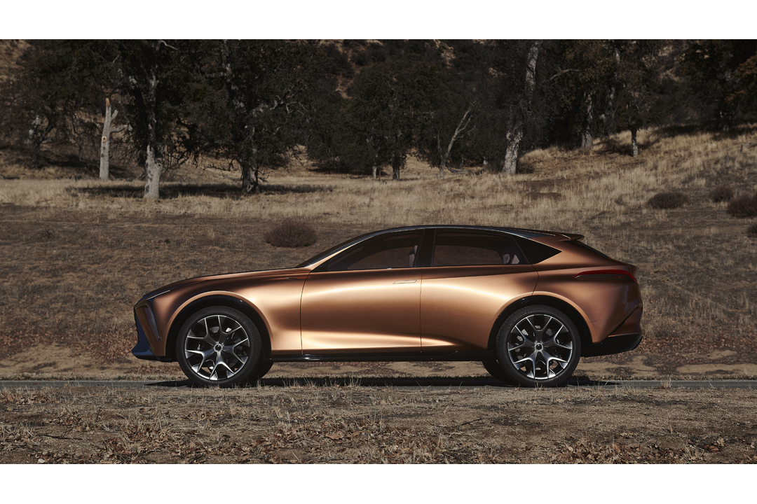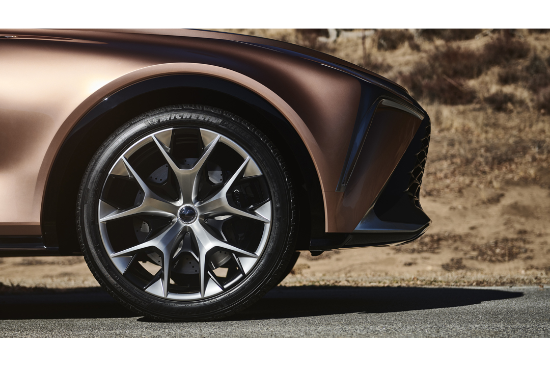 Вообще, при первом взгляде на концепт публика вполне обоснованно припоминает Infiniti FX. Очень уж похожи пропорции базы, изгиба крыши и линии остекления, длинный выпуклый капот. Но пропорции воровать не запретишь; в остальном же Lexus LF-1 вполне самобытен. Сложная архитектура светодиодов головного света, огромные 22-дюймовые колеса и такие же необъятные арки, корма с выраженным наклоном задней стойки крыши выполнена в стиле гран-туризмо. Задний спойлер разрезан посередине якобы ради красот прозрачной крыши, а мощный бампер источен тоннелями воздуховодов. Посыл однозначен: «я большой, мощный, предельно дорогой и очень современный». И я не мамонт, стоило бы добавить.