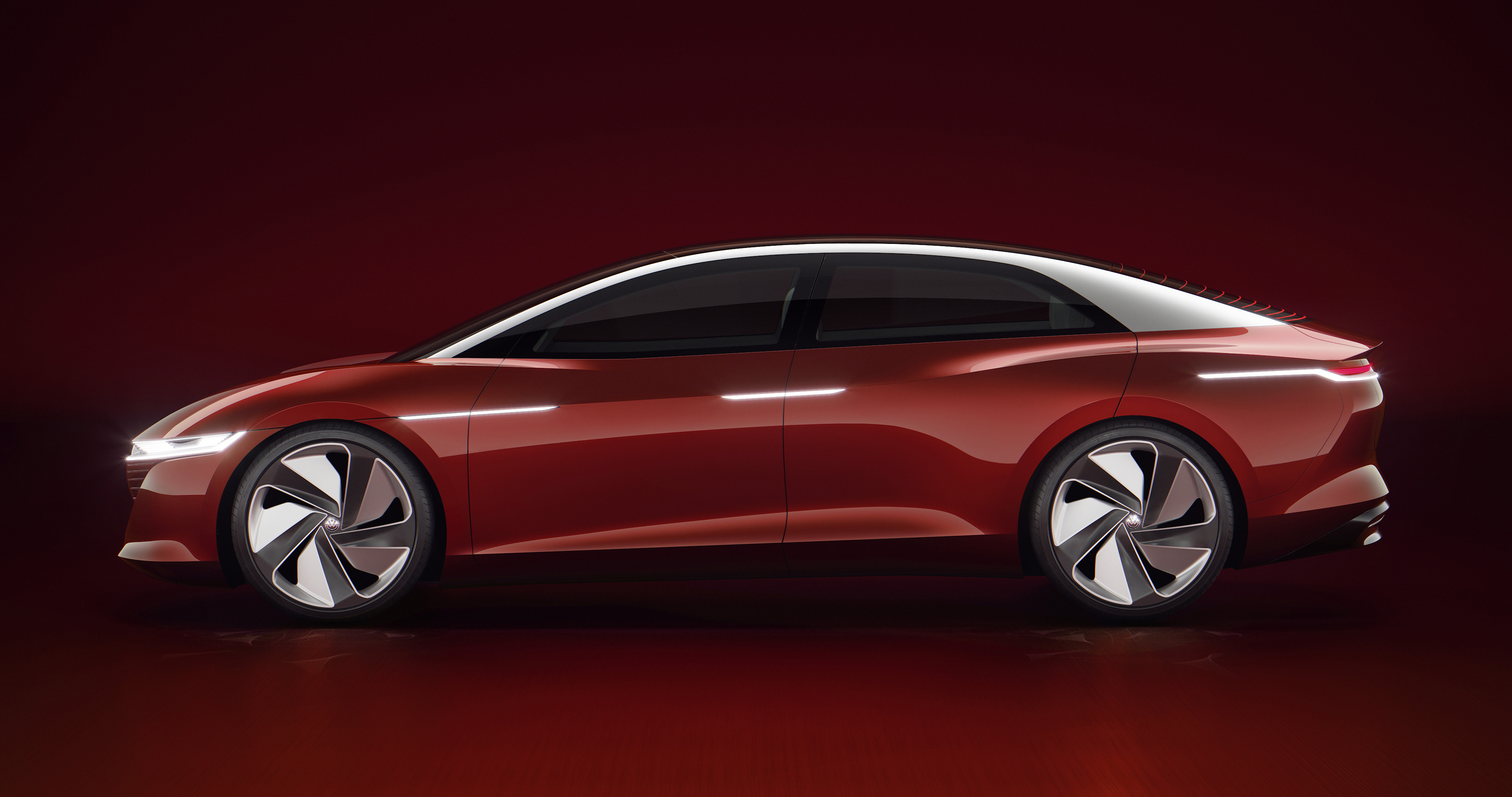 I.D. Vizzion — это взгляд в недалекое, но все же будущее, за подписью чрезвычайно прагматичного и всемогущего концерна. Как и все автомобили из серии I.D., Vizzion построен на специальной платформе MEB. Машина не маленькая, это седан подстать Audi A8 или даже VW Phaeton (концепт уступает бывшему флагману лишь 16 мм длины). Габариты таковы: длина — 5163 мм, ширина — 1947 мм, высота — 1506 мм, а колесная база — 3100 мм (здесь «Фаэтон» превзойден благодаря передним колесам, максимально сдвинутым вперед — ведь под капотом нет мотора!).