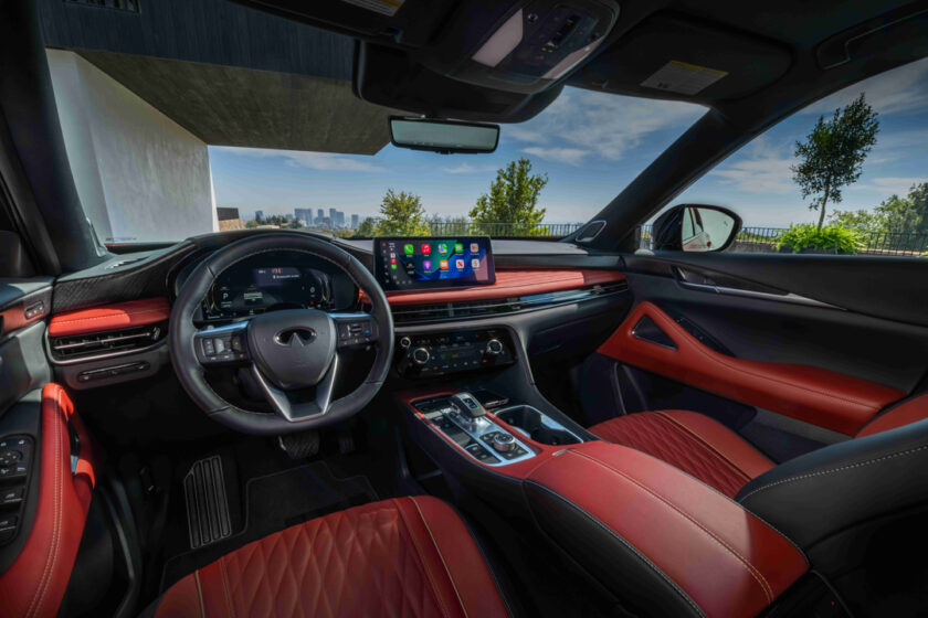 В Казахстане будет доступно три комплектации – Luxe, Sport и Autograph. Уже в самой «простенькой» комплектации (она же Luxe) модель имеет 20-дюймовые диски, светодиодные фары и панорамную крышу с люком. В интерьере два 12,3-дюймовых дисплея (динамический приборный и мультимедийный INFINITI InTouch), аудиосистема с 11 динамиками, беспроводная зарядка для смартфона и, конечно же, поддержка беспроводных Apple CarPlay и Android Auto. Передние сиденья – с электроприводом и подогревом, климат-контроль – автоматический, трехзонный, дверь багажника – с электроприводом.