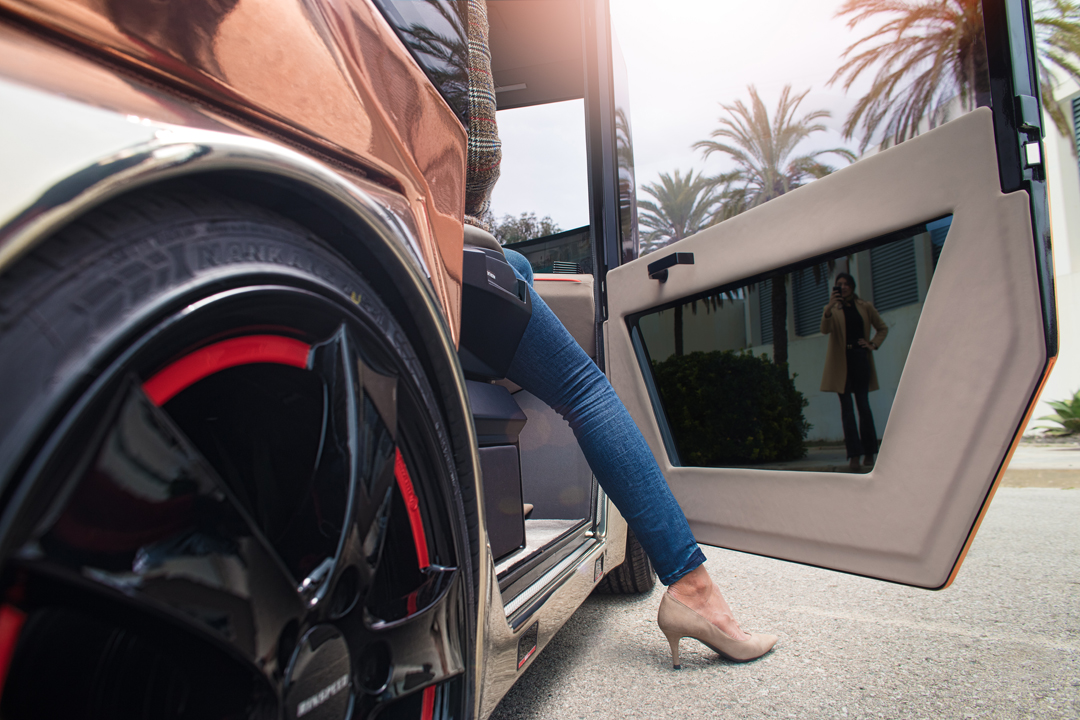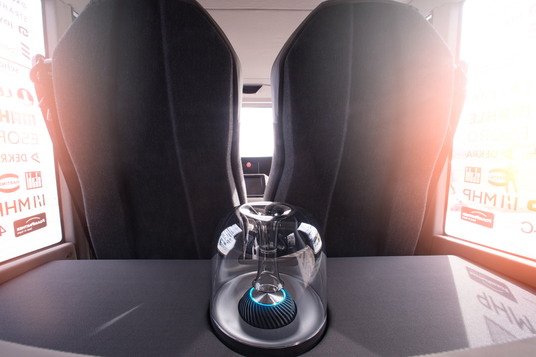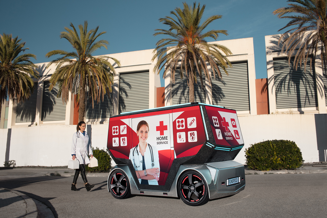 Показанная в Лас-Вегасе надстройка была рассчитана на двух пассажиров. Огромный дисплей диагональю 49 дюймов, автоматически затемняемые боковые стекла, крутая акустика от Harman (каждый пассажир слышит только «свою» музыку) и вместо руля навигатор, который ждет, когда вы зададите пункт назначения. Риндеркнехт – он такой, умеет удивлять.