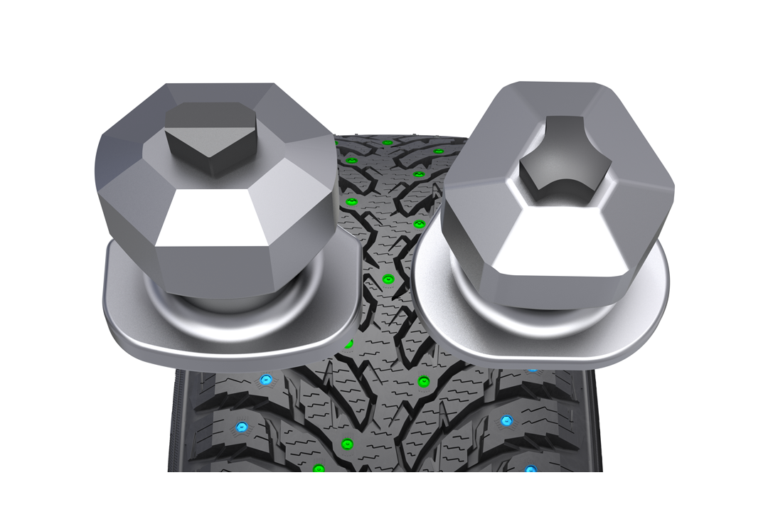 Помимо двух типов шипов концепция Nokian Eco Stud 9 включает еще и амортизирующий слой Eco Stud, который смягчает контакт шипа с дорогой, а также предусматривает воздушное пространство в центре фланца, за счет чего снижается воздействие шипа на дорожное покрытие, сохраняя при этом отличное сцепление с ним.