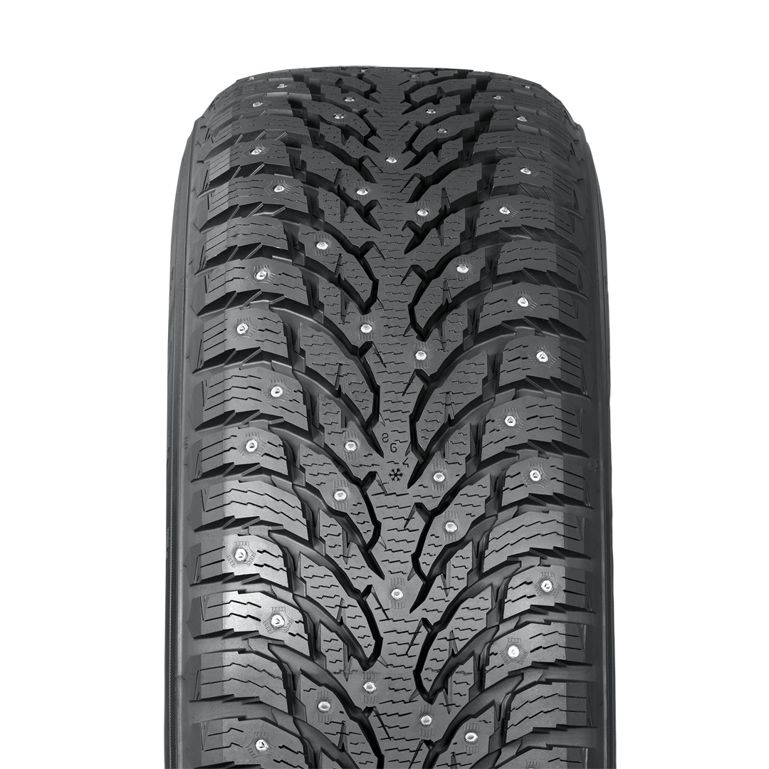 Шипы в плечевых зонах несколько иные. Их задача — обеспечивать первоклассное поперечное сцепление при прохождении поворотов на скользкой дороге. Их трехосный твердосплавный штифт износостойкого элемента был разработан так, чтобы эффективно выдерживать боковые нагрузки. Как утверждают специалисты компании, при повороте транспортного средства кромка шипа всегда будет захватывать максимальную площадь в пятне контакта, что увеличивает поперечное сцепление.