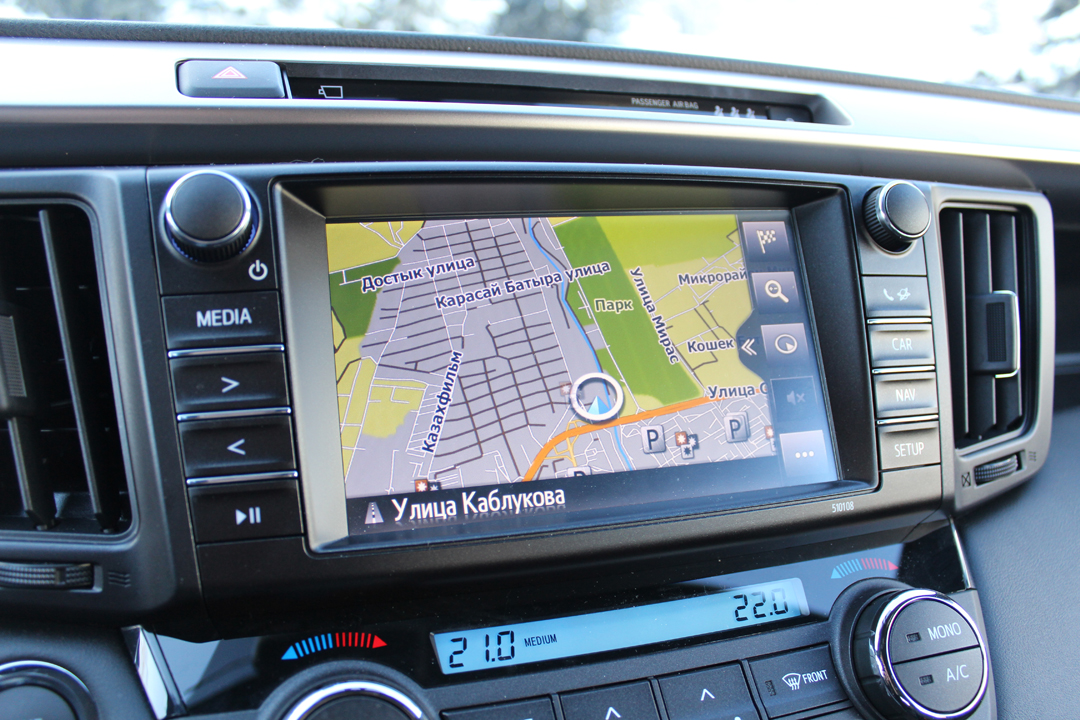 Сейчас, возможно, кто-то скажет, что это придирки чистой воды, избалованность. Может быть. Тем более, что на эксплуатацию и удобство в целом все эти моменты практически не влияют. А вот эргономика влияет напрямую. Но с ней у Toyota RAV4 все почти идеально: основные органы управления находятся там, где должны быть — впервые сев за руль, я ни разу не задумался о поиске какого-нибудь рычажка или кнопки, а такое бывает не часто. Щиток приборов, который я пожурил за старомодность, оказался очень удобным в плане считывания показаний, а пара дисплеев, один из которых расположился по современной моде между тахометром и спидометром, а второй в центре верхней части передней панели, обеспечили необходимым объемом полезной информации. Очень хорош и мультифункциональный руль — разобраться с назначением кнопок, расположенных на нем, оказалось несложно, а управлять всеми функциями вполне удобно.