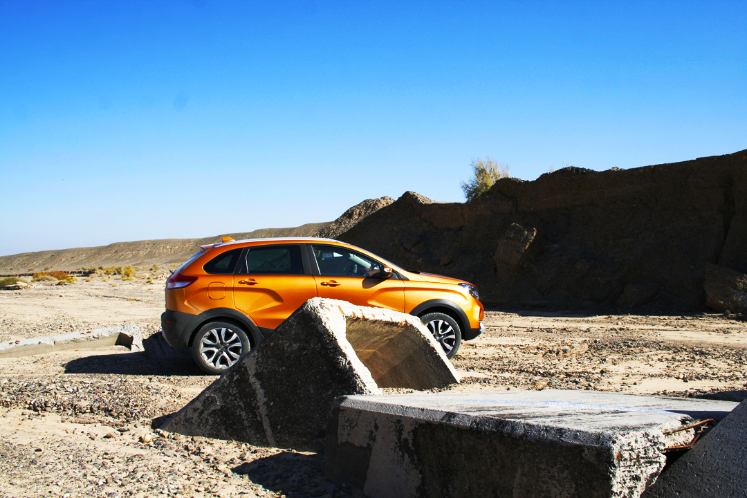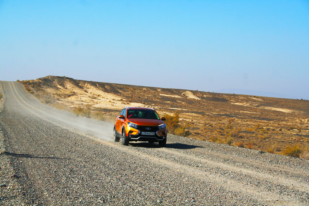 Грунтовка — родная стихия для XRAY Cross. Даже небольшие промоины, неизбежные в степях, этот поднятый хэтчбек спокойно пролетал на высокой скорости без какого-либо намека на фальшь в подвеске. Длинноходная, она отрабатывает все. И, что интересно, при езде по грунтовке подвеска кажется намного мягче, чем при езде по асфальту. По грейдеру XRAY Cross мчит с невозмутимостью «Нивы». Кстати, клиренс у них почти одинаковый.